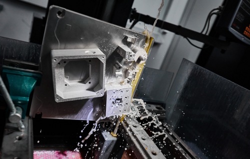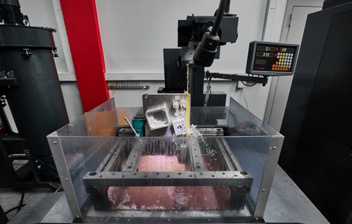 Используется электроэрозионный станок, чтобы срезать детали. На фотографии видно, как струна по которой пущен ток срезает детали.